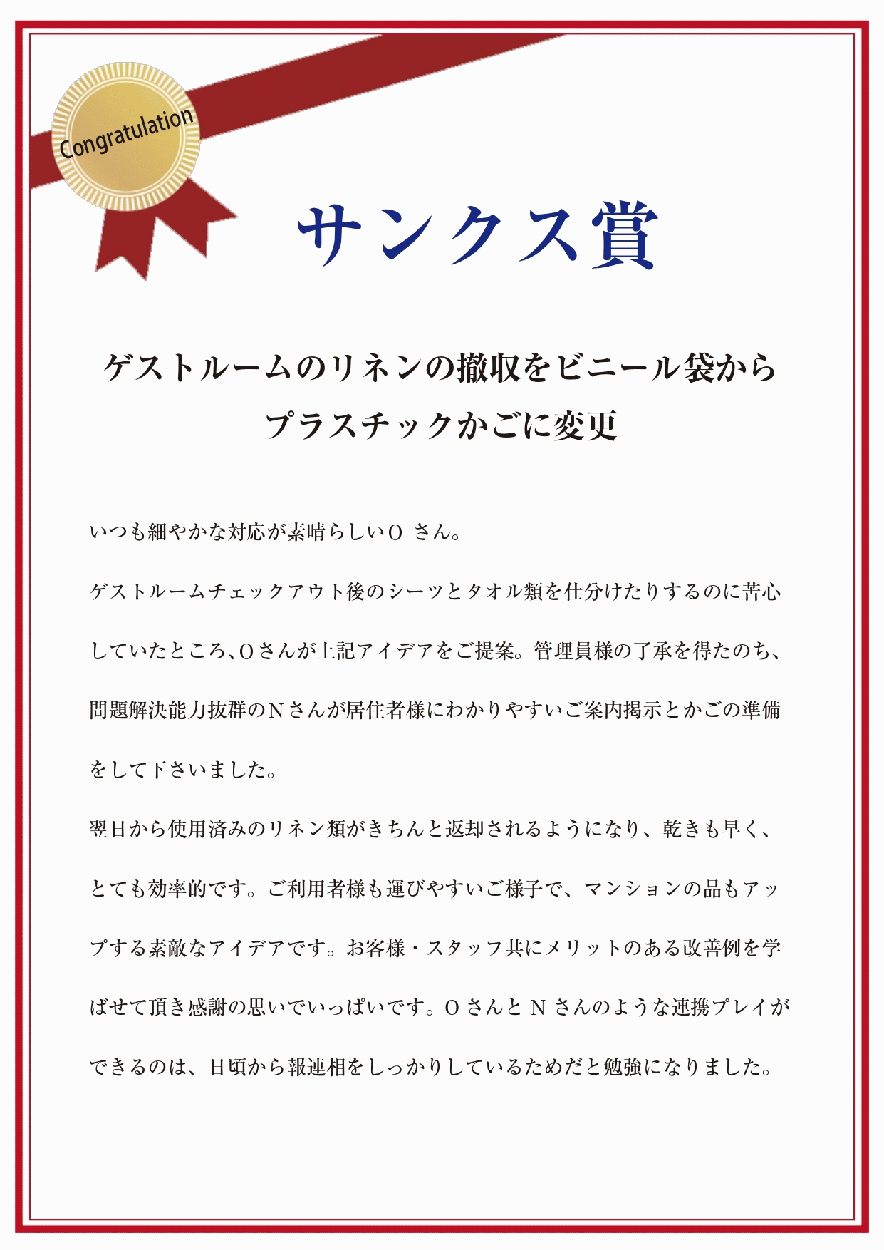 ¥µ¥ó¥¯¥¹¾Þ¤È¤Ï¡¢°ì½ï¤ËƯ¤¯¼Ò°÷¤ä´Ø¤ê¤Î¤¢¤ë¼Ò°÷¤Î¤ª¼êËܤȤʤë¶Ð̳»ÑÀª¡¦¥Á¡¼¥à¤ËÂФ¹¤ë¹×¸¥¤ò¾Î¤¨¡¢´¶¼Õ¤ò£¤ë¾Þ¤Ç¤¹¡£